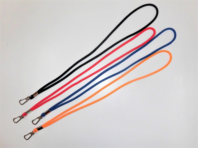ナイロン丸紐タイプのネックストラップ 触り心地が柔らかく、程よい弾力があります。 シルクプリントにも対応しております。