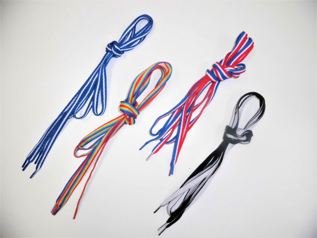 スニーカーなどに使うくつ紐 素材や長さなどご相談下さい。 素材によってはオリジナルのプリントも可能です。 お洒落は足元から‼