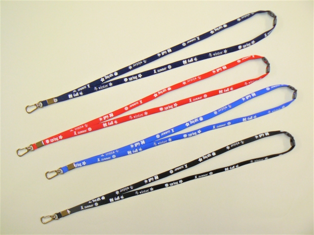 安価・短納期(ご相談下さい!!) ポリエステルの柔らかい素材です。 テープの色目は数種類ございます。 長さや・先端のパーツの種類・ロットなどご相談承ります。 カラーバリエーションは50色 ※カラーはPCモニターでは色彩、発色が異なります。ご了承ください。 シルク印刷も可能です
